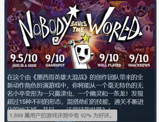 Steam上的好评率百分之九十以上,使用了从上往下的俯视视角,还支持单人游戏,多人合作游玩等等
